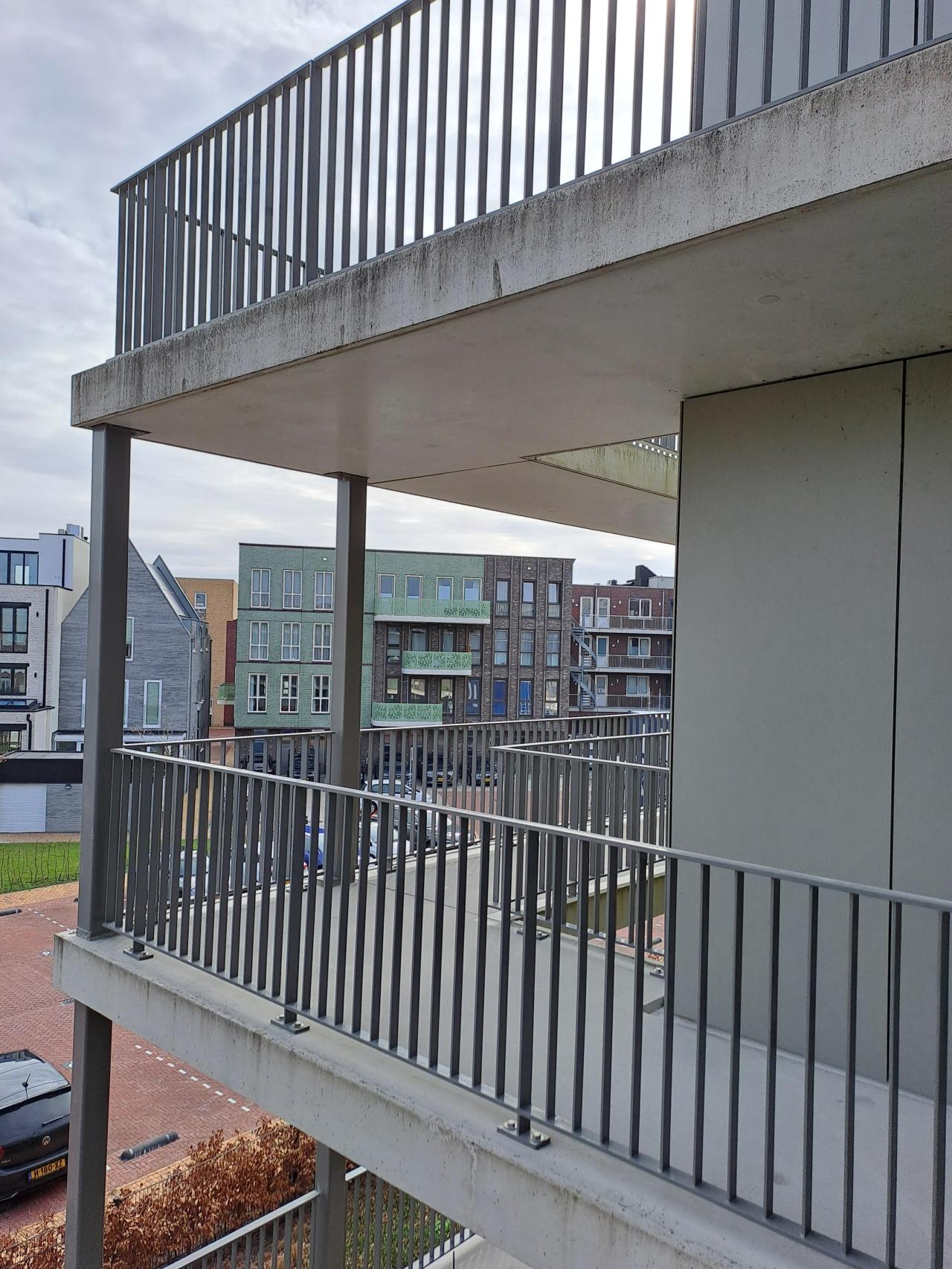 De woning is op de derde verdieping en heeft een privé gedeelte op de brede galerij .U komt via de voordeur meteen in de woonkamer. Er is geen halletje. De open keuken zit in het midden van de woning.