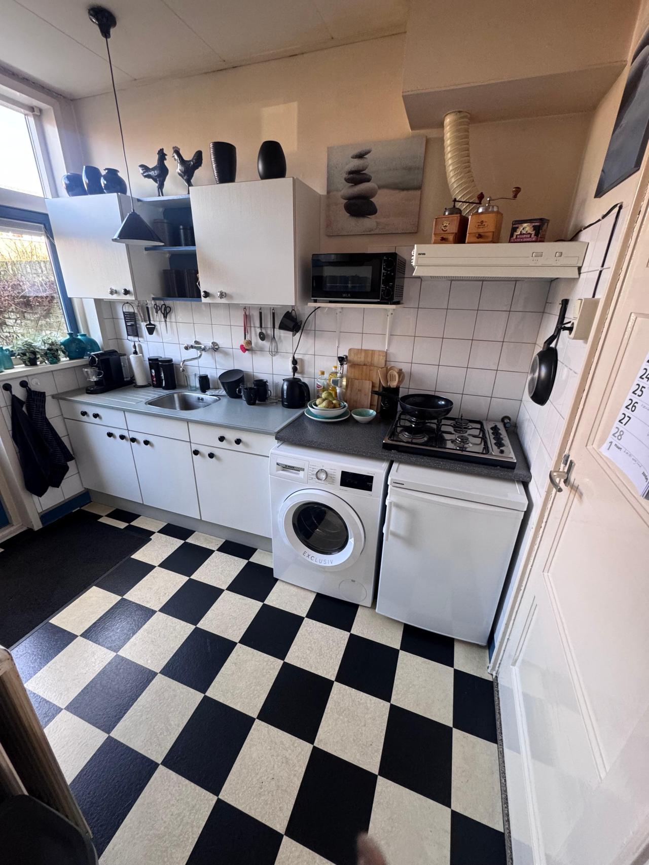 De woning beschikt over een woonkamer met aangrenzende keuken. De keuken wordt opgeleverd met een aansluiting voor elektrisch koken. De keuken is nog goed bruikbaar. Nieuwe huurders kunnen zich na het betrekken van de woning zelf inschrijven op de keukenwachtlijst van Wooncompagnie. Binnen ongeveer een jaar kan er dan een nieuwe keuken worden uitgezocht. Wooncompagnie vervangt daarbij kosteloos drie onderkasten en drie bovenkasten. Wanneer u de keuken wilt uitbreiden, kan dit tegen bijbetaling worden uitgevoerd.