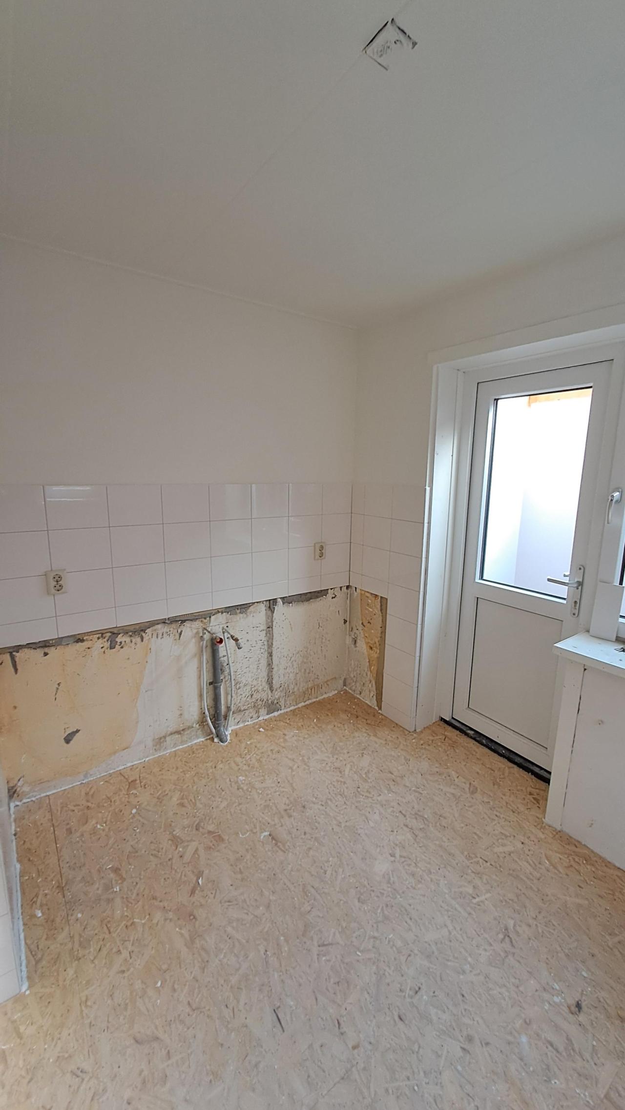 De badkamer is recent vernieuwd. Tevens wordt er nog een standaard keuken geplaatst, bestaande uit 3 onderkasten en 3 bovenkastjes.
